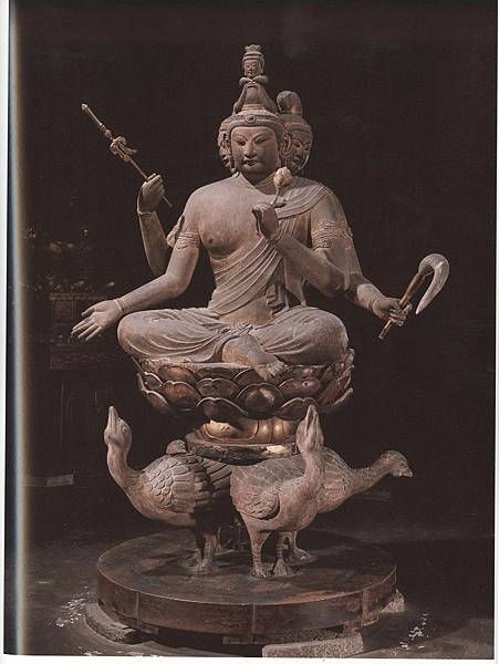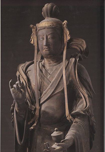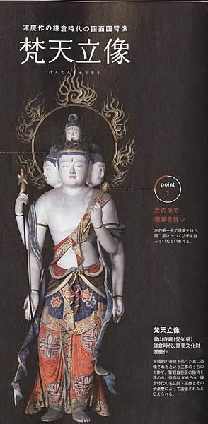 這次在東寺的講堂內便是以左梵天、右帝釋的強強組合,出現在中尊佛陀的兩側,來看看這尊已列為國寶的「梵天」像: