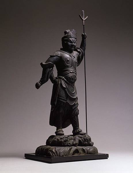 圖中是滋賀「龍應山西明寺」兩尊不同形態的「刀八毘沙門天」,一尊頭戴獅子冠,坐在捲毛獅子上,這是祂的基本型,至於另一尊秘佛「玄武刀八毘沙門天三尊像」則融合了妙見菩薩(玄天上帝)腳踏烏龜的形態,由於「毘沙門天」與「妙見菩薩」在日本武將心中都是「軍神」,乾脆合在一起拜,團結力量大嘛!