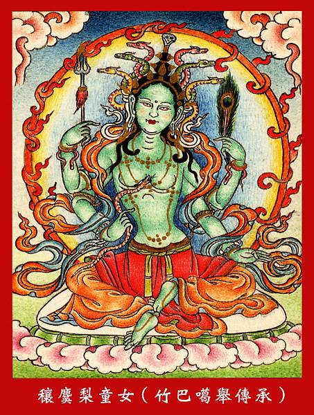 「至於佛教中有沒有"以蛇為髮"的人物?我曾記得我的老師佛陀曾提及,祂去香醉山踏青時,曾碰到一位"鹿皮為衣,將諸毒蛇而為瓔珞,蟒蛇蝮蝎諸毒虫而為伴戲。"名叫"穰麌梨"的小蘿莉……」