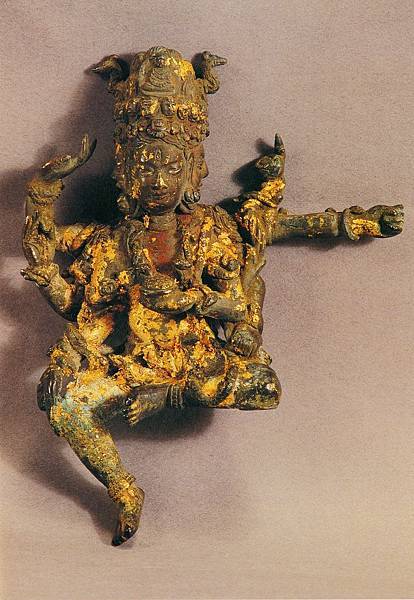 大理國千尋塔出土,銅鎏金六臂觀音 雲南考古研究所藏。