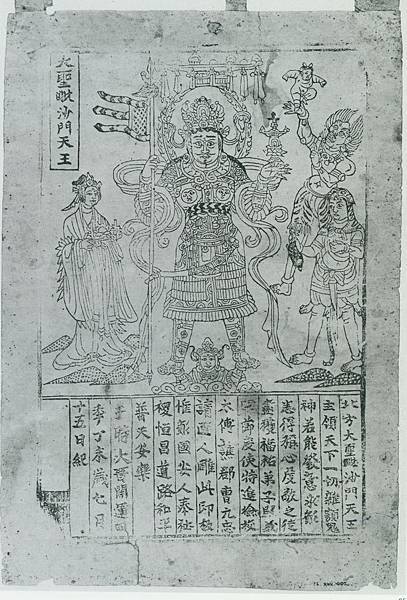 還記得魔王看到一本介紹敦煌壁畫的外國專書《caves of the Thousand Buddhas》時,見到了17窟有幅五代時期的「毗沙門天王版畫」,在天王的左側有位夜叉鬼,